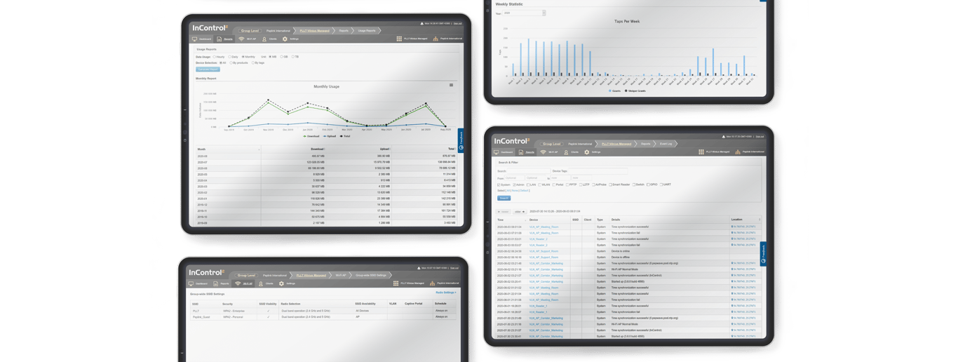 Med Peplink InControl kan du enkelt administrere og overvåke nettverket ditt fra en hvilken som helst nettleser, uten behov for ekstra maskinvare. Fra et sentralt dashbord kan du konfigurere SSID-er, justere radioinnstillinger og søke i hendelseslogger for effektiv nettverksdiagnose. InControl forenkler driften og gir deg full oversikt over dine AP One AX Lite-enheter.
